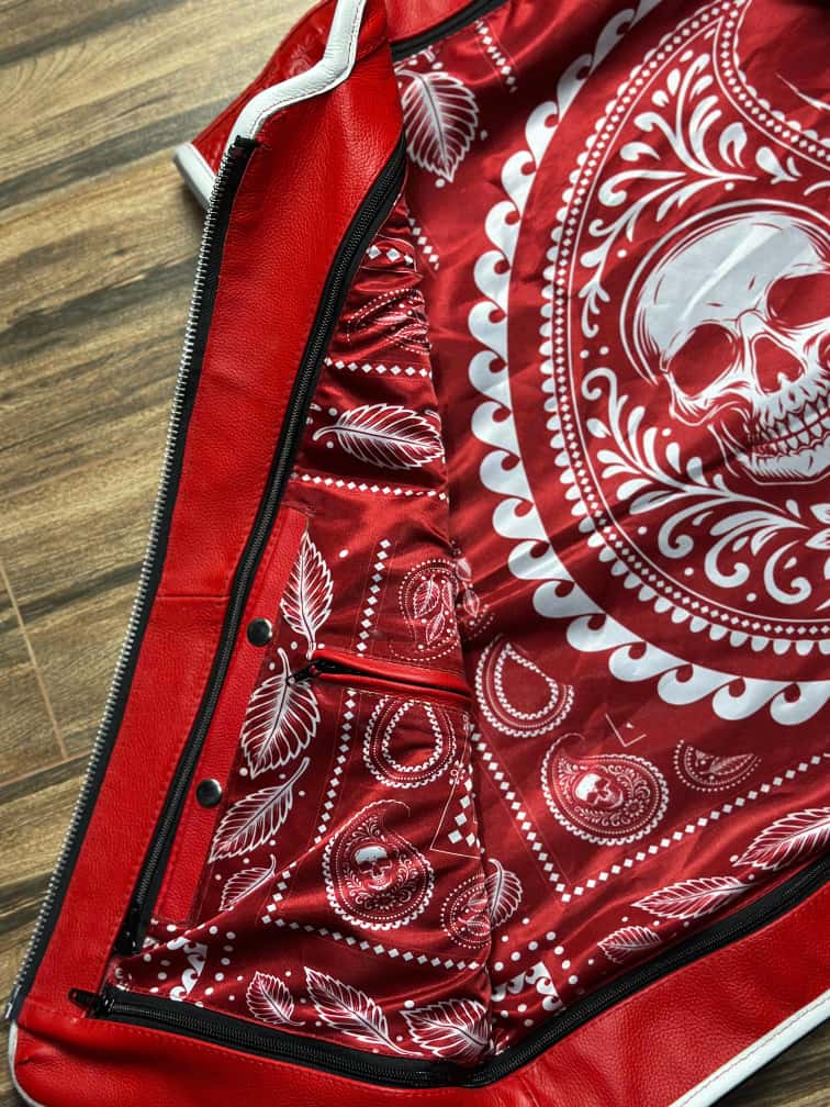 Elevate your streetwear edge with the Red River—a bold vest built for those who thrive on making statements. Cut from premium fabric in a striking red-and-white contrast, this sleeveless design radiates fearless energy and urban confidence. Smooth white trim lines the collar, edges, and zipper, delivering sharp detail against the vibrant red base for a rugged yet polished finish. The sturdy front zipper closure ensures effortless wear, while the relaxed fit and adjustable straps make it perfect for layering over tees, hoodies, or street jackets. Displayed on a matte-black hanger against a raw brick backdrop, the Red River captures the spirit of urban rebellion—ideal for hustlers and trendsetters who demand style with impact.